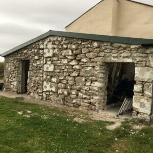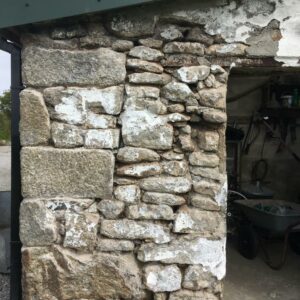 Well it’s more digging out tons of concrete than pointing, but we are making progress. The mortar around the door is more like concrete and is tough as shit. This is how far progress has been made in about 3 hours work. The area between the two doors has been a lot easier, with the mortar here more like hard cheese. The pointing really wasn’t doing anything to stop the water going right through…