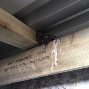 I was wondering why our car was getting covered in bird poop and here is the reason. They must have started building the nest late in June and this is where they got to when this piccy was take on 7th of July. We checked it from time to time, but there didn’t seem to be any activity up until now in mid August. If you creep in quietly you can see a beak…